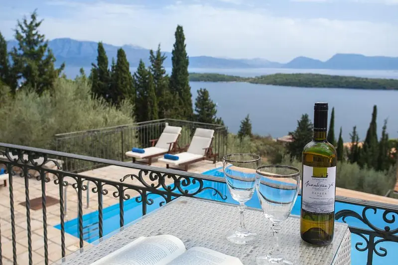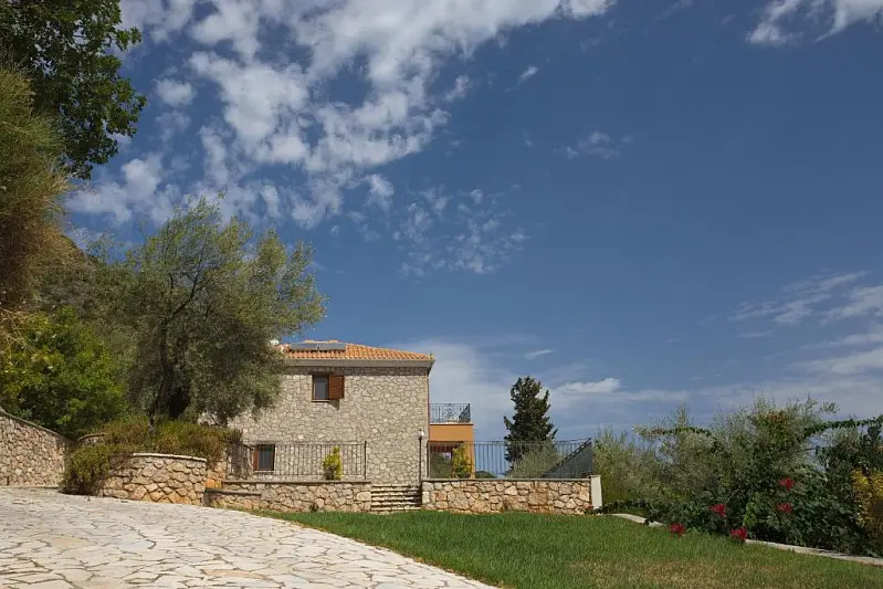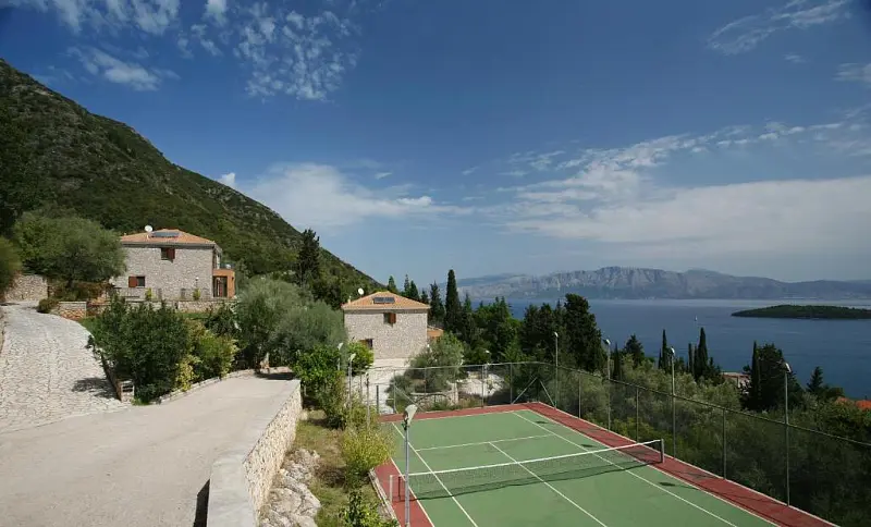 This luxury stone villa is graciously perched on a wonderful uphill location just a few kilometers away from the sunny beaches of the east coast of Lefkada island, in Nidri. It belongs to a complex of two twin, totally independent villas and combines traditional elements with a modern design, providing luxury, romance and feelings of homelike hospitality. It features an outdoor private pool on a large terrace with sunbeds and umbrellas offering relaxable moments. A special feature is the sea-view tennis court suited in the country yard with the exclusive use of guests, so you can enjoy a game or two in the early morning sun before of the heat of the day.