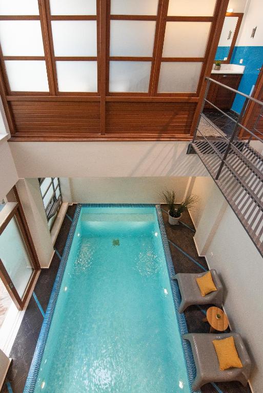 Oaspeții cazați la această vilă au la dispoziție o piscină interioară.