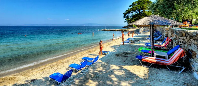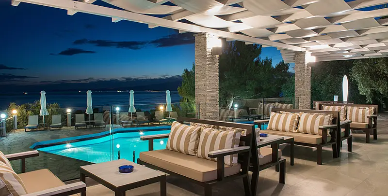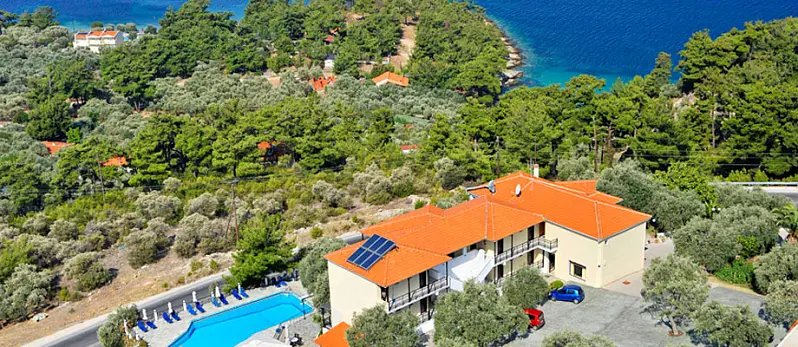 Hotelul este situat in Skala Rahoni, la 250 m de plaja Glyfoneri, cu nisip si pietricele, renumita pentru frumusetea ei. La 10 minute de mers pe jos se afla numeroase cafenele si taverne. Portul Limenas este la 8 km, iar portul Prinos la 8.4 km. La 10 minute de mers pe jos se afla baruri, taverne, magazine. Pe plaja cu nisip si pietricele, sezlongurile si umbrelele sunt contra cost.