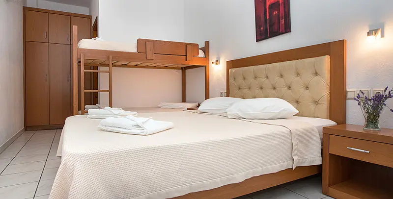 Cele 23 de camere au frigider, seif (10 euro/saptamana), baie cu dus, uscator de par, telefon, TV, aer conditionat (5 euro/zi), balcon mobilat. Camerele duble au 15 mp, 2 paturi si capacitatea maxima 2 persoane. Camerele pentru 4 persoane au 20 mp, 2 paturi single si 2 paturi supraetajate sua 2 canapele.