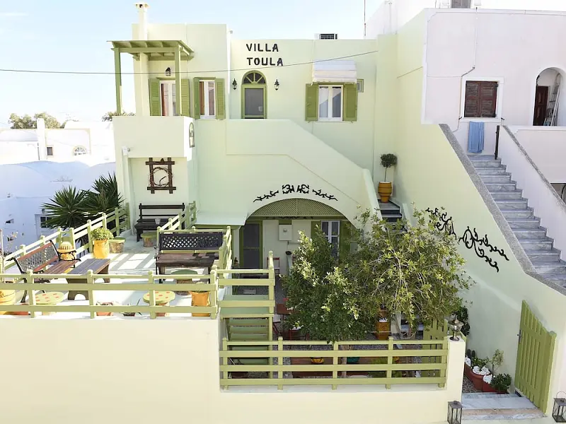 With a stay at Villa Toula in Santorini, you'll be a 2-minute drive from Santorini Caldera and 7 minutes from Old Port. This hotel is 4.9 mi (7.9 km) from Athinios Port and 5 mi (8 km) from Kamari Beach.Take in the views from a terrace and make use of amenities such as complimentary wireless Internet access and tour/ticket assistance.Featured amenities include complimentary wired Internet access, dry cleaning/laundry services, and multilingual staff. A roundtrip airport shuttle is available for a surcharge.Make yourself at home in one of the 7 air-conditioned guestrooms. Complimentary wireless Internet access is available to keep you connected. Bathrooms with showers are provided. Conveniences include blackout drapes/curtains, and housekeeping is provided daily.