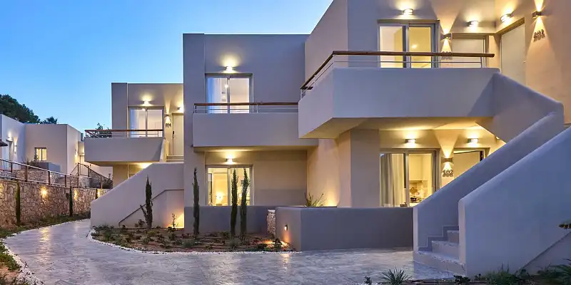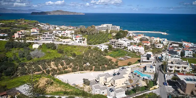 The 16 brand new apartments and studios, decorated with modern materials and attention to detail, are located on an idyllic plot of land of 3.5 acres, in Kalamaki, just 6 km west of Chania and the impressive Venetian Harbor, which is a magnet for permanent residents and visitors alike.