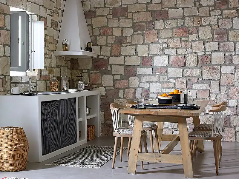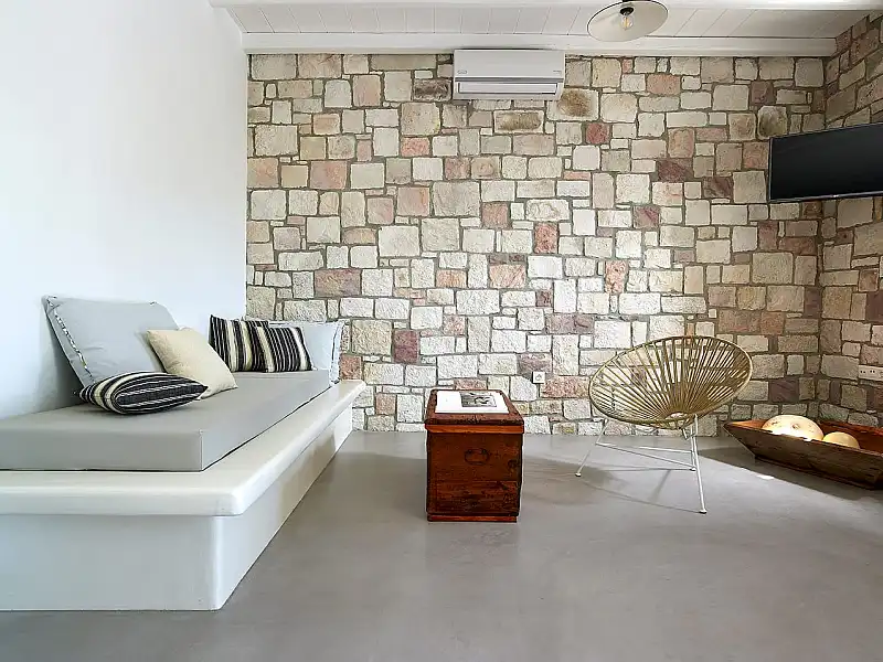 For those who seek something smaller, cozy and traditional, we also have the Studio Vipera. A single space of about 70sq.m. which can accommodate up to 3 guests in total. It incudes a big double bed and a sofa-bed, as well as a private bathroom with shower and a small kitchenette. Of course, a lovely veranda right outside your door to enjoy relaxing moments.