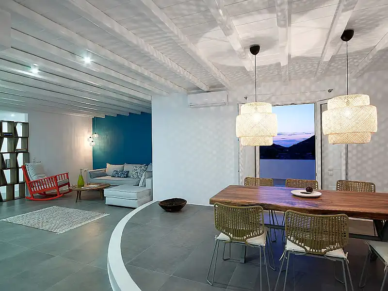 Indulge in the magic of the senses... The jewel of Triovasalos welcomes its eminent guests to a new world of unparalleled beauty and luxury. 190 sq.m unsurpassed comfort and austerity, the luxurious Villa Vipera embraces the Cycladic white with its sophisticated lifestyle in an exceptional architectural home. The villa has three bedrooms with king sized beds and two bathrooms with shower. The large communal areas consist of a comfortable, elegantly decorated living room, a large wooden dining room and a fully equipped kitchen. Furthermore, on the large paved private verandas, having a magnificent view of the Aegean Sea, you can relax and enjoy the warm Cycladic sunshine in our unique aesthetic sunbeds. Villa Vipera is the best choice for families, friends or couples looking for privacy and comfort in the idyllic Milos.