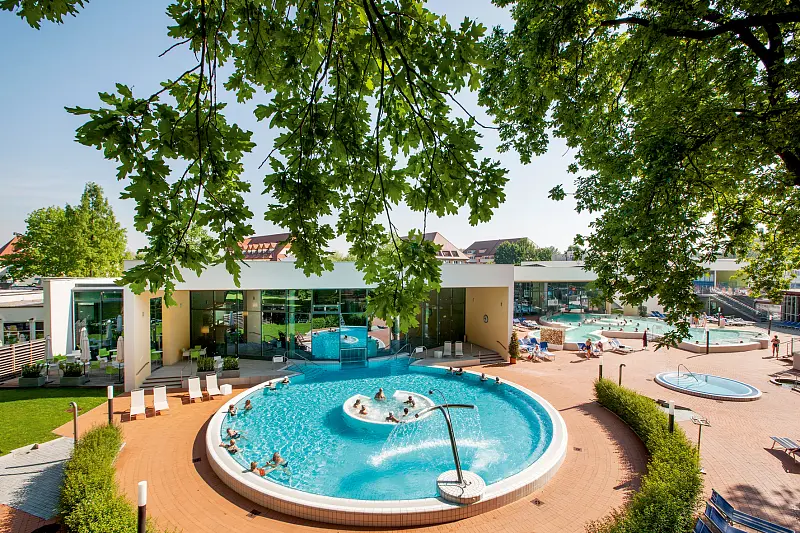 This 4-star hotel in Bad Radkersburg offers direct access to the Parktherme through an underground tunnel. The hotel features a restaurant serving Austrian and international specialties and free WiFi in all areas. The elegant, individually furnished rooms at the "Vitalhotel der Parktherme" all feature a balcony, a TV and a private bathroom. A varied buffet is offered daily. Massages, nutritional advice and various wellness treatments are available on request. The Parktherme's wellness area includes indoor and outdoor pools, a steam bath and a hot tub. A bar, a café and a juice bar for children are also available at the Vitalhotel. The pastry shop offers a wide selection of cakes. Hiking and cycling trails through the surrounding vineyards start right on the doorstep. Electric bikes can be rented at the hotel. Revision work in various periods: SPORTS POOL February 24th to March 7th, 2025 VITALITY POOL March 31st to April 4th, 2025 SPRING POOL May 5th to May 9th, 2025 ADVENTURE AREA September 15th to September 26th, 2025 Please note that during the revision of the adventure area, no bathing facilities will be available for children under 6 years of age. facility / Ambiance: comfortable, modern target audience: sport & active travellers, nature lovers, wellness travellers, mountainbiker / bicycle travellers, families