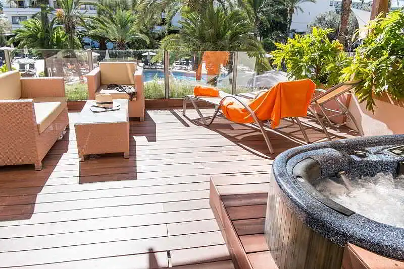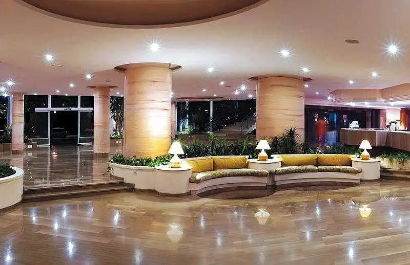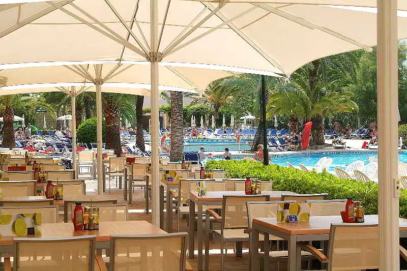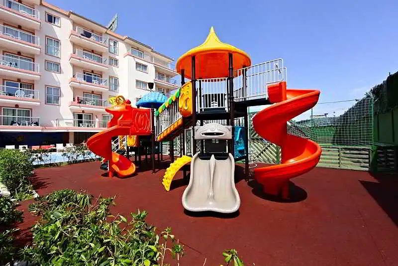 The building was constructed in 1989 and consists of 5 floors and a total of 254 apartments. Guests are offered a beautiful, large garden and pool area, a substantial lobby with lifts, a currency exchange counter and a 24-hour reception. There is also a supermarket, bicycle hire, a café, a snug bar and an air-conditioned restaurant with a non-smoking area and high chairs available for small children. Business guests may make use of the Internet access. Guests may also use the medical assistance if necessary. Younger guests may enjoy letting off steam in the play area or in the kids club. The hotel is open from April to October.