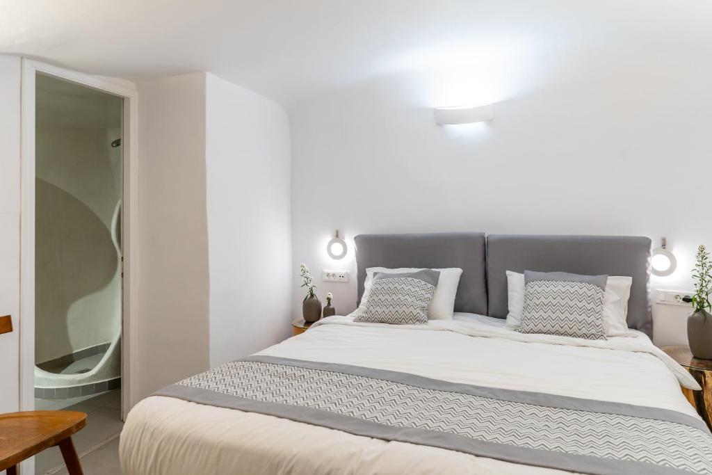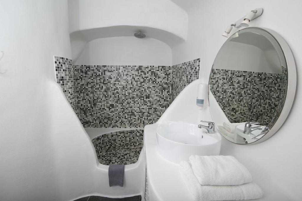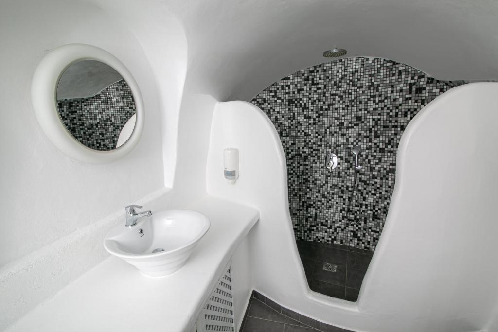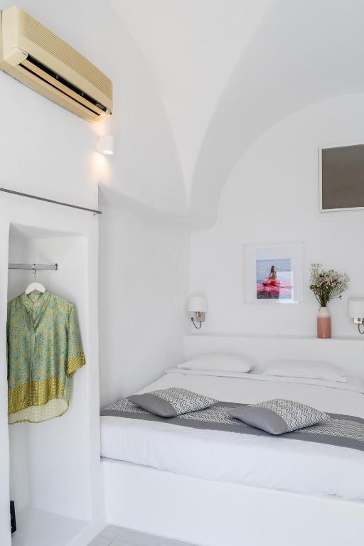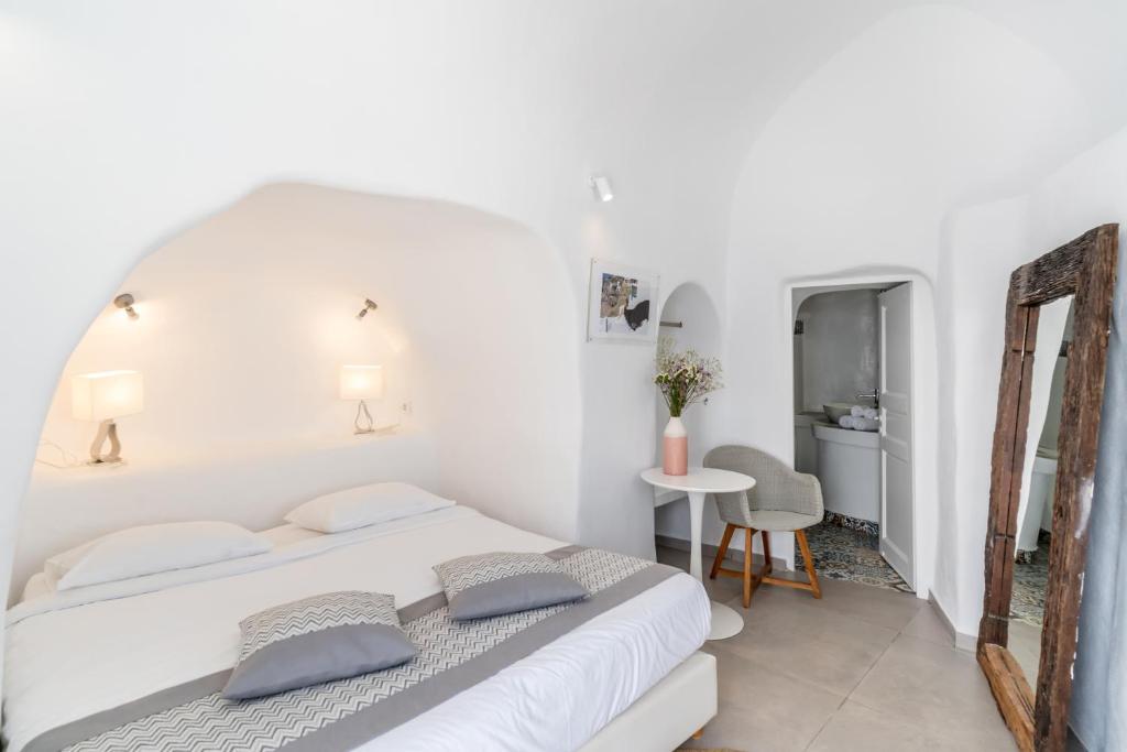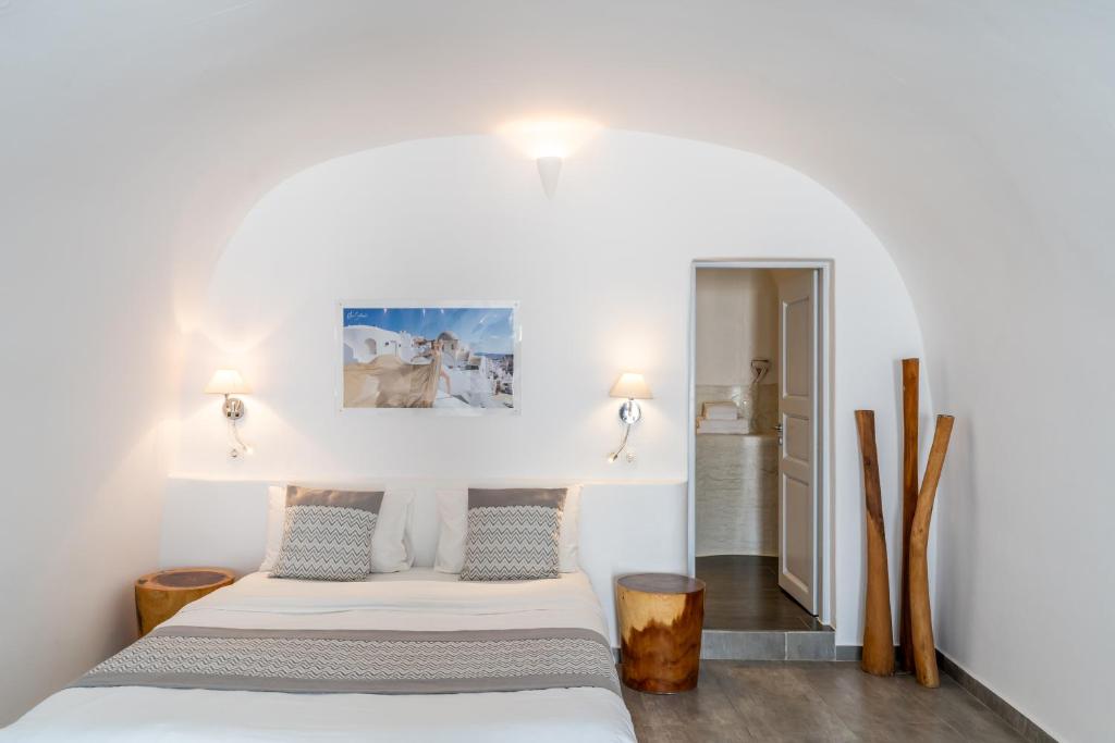 Suitele spațioase, decorate in stilul cicladic tradițional, imbină perfect albul imaculat cu accente moderne și elegante. Fiecare suită dispune de terasă privată cu vedere la Caldera, iar unele beneficiază de propriile piscine infinity sau jacuzzi in aer liber.