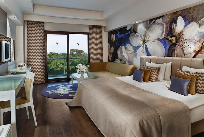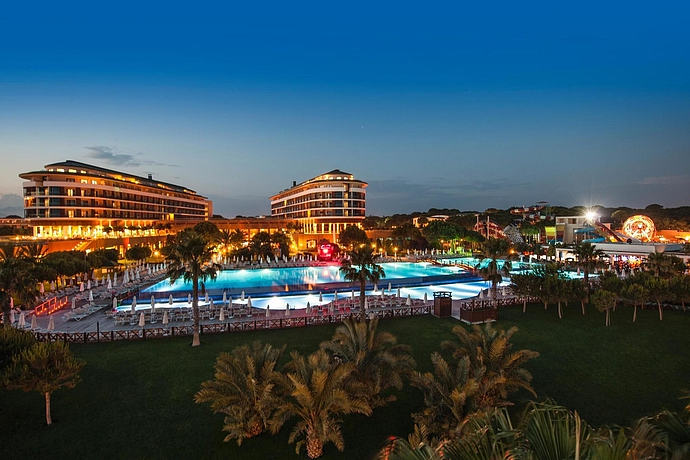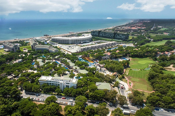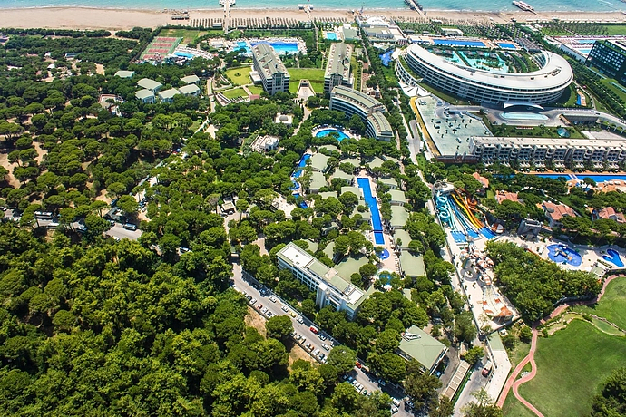 HOTEL: Este hotel cuenta con restaurantes a la carta, bares, cafeterías, pubs y discoteca. Los clientes disponen de 600 habitaciones, un vestíbulo, servicio de salida, una recepción, aire acondicionado, servicio de cambio de moneda, ascensor, kiosko, peluquería, un auditorio y sala de juegos. También ofrece un patio de juegos para los mas pequeños, club infantil, instalaciones para conferencias, parking, servicio de lavandería con cargo adicional y alquiler de bicicletas. SITUACIÓN: Este establecimiento está en Belek, cerca de la playa. A 2 kilómetros está situado el corazón de la ciudad. Enfrente podrá encontrar el transporte público. A 35 km se dispone del aeropuerto de Antalya. HABITACIÓN: Las habitaciones cuentan con cuarto de baño con ducha o bañera, secador de pelo, televisión satélite, caja fuerte con cargo extra, aire acondicionado, minibar, teléfono, calefacción individual y balcón o terraza.