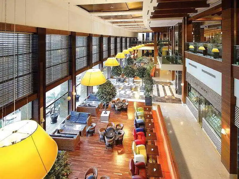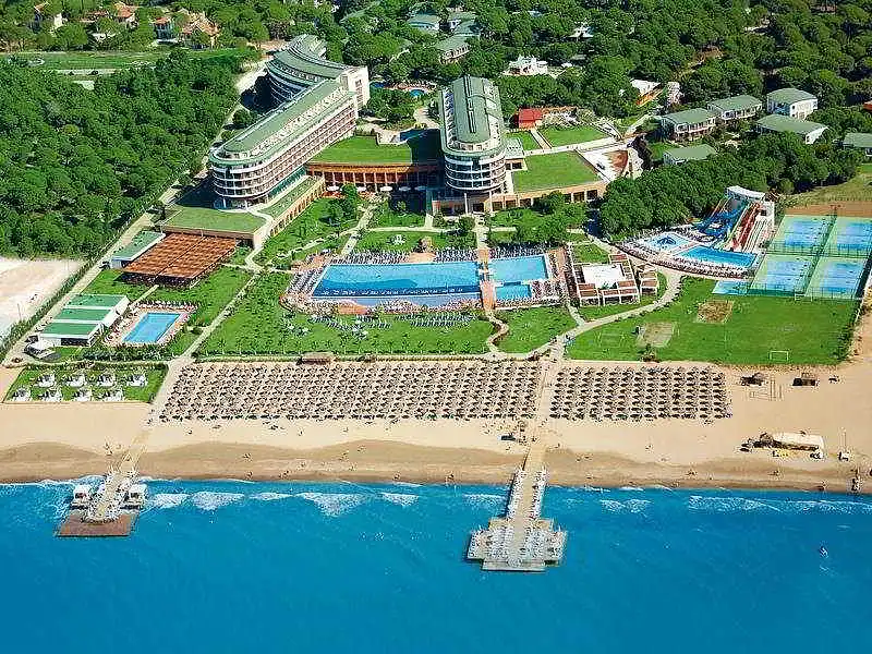 This is a large, modern hotel with an international mix of guests. Furnished and decorated in a modern and contemporary style, the hotel offers stylish accommodation and a wide range of facilities and activities. There are a total of 600 rooms and 73 stylish villas on site along with a choice of à la carte restaurants, bars, a café, pub and a nightclub. Located on Turkeys southern coast in the district of Belek, this impressive hotel is next door to one of the areas many golf courses and at 35 km from Antalya Airport. Younger guests will enjoy the Dinosaur Dig & Kids on the Moon play areas.