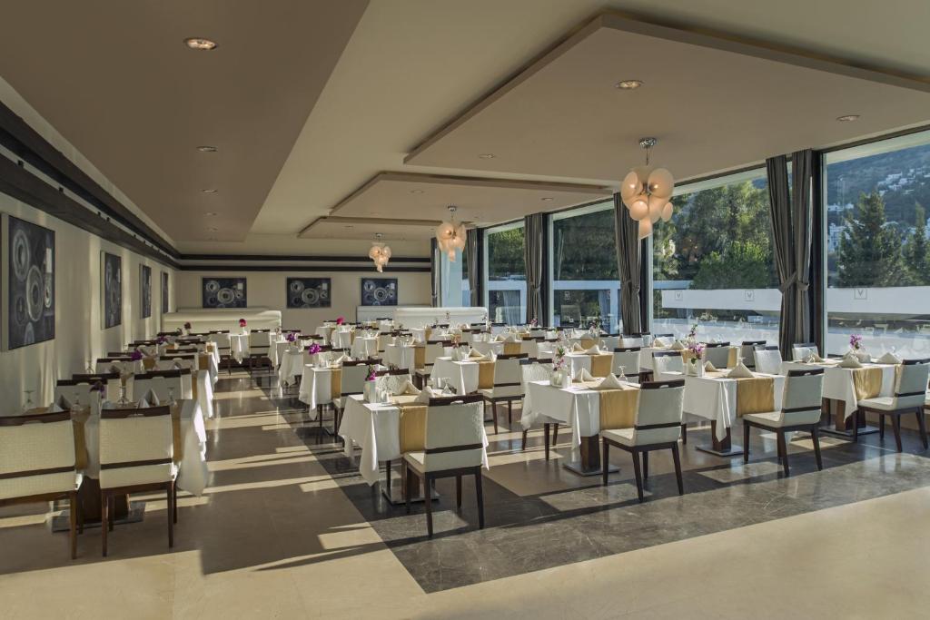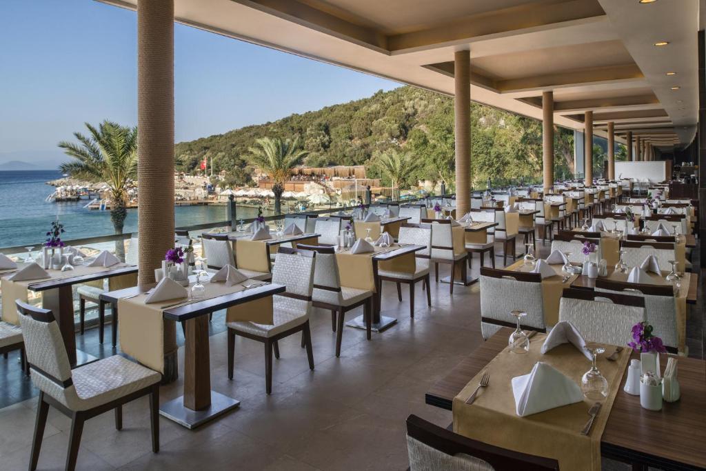 Restaurantul Kebappa al hotelului Voyage Türkbükü oferă specialităti turcesti delicioase, pregătite cu ingrediente locale proaspete. Restaurantul Deep Fish serveste preparate din fructe de mare proaspete. Proprietatea are si un bar, unde oaspetii se pot bucura de cocktailuri si muzică live.