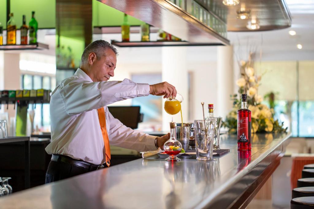 Există un bar cu terasă atractiv langă piscină. Există, de asemenea, un loc de joacă pentru copii.