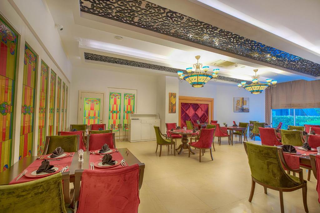 Complexul dispune de piscină exterioară cu secțiune pentru copii, restaurant principal cu preparate din bucătăria turcească și internațională, precum și un bar la piscină unde puteți savura băuturi răcoritoare și cocktailuri.