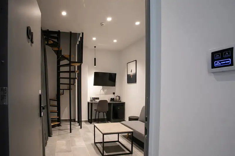 The collection of modern photos that decorate our rooms, give an artistic point of view in the space. After returning from your tour or work you have the opportunity to relax on their private balconies enjoying the sea or city view.