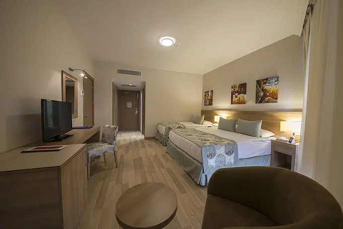 HOTEL: Este hotel construido en 2012, cuenta con 348 habitaciones, 112 habitaciones dobles, 4 habitaciones adaptadas a personas con movilidad reducida, 116 habitaciones superiores y 116 habitaciones familiares. Se ofrece a los huéspedes instalaciones adaptadas para minusválidos. También cuenta con un parking. SITUACIÓN: Este establecimiento está en Aksu-antalya, está situado en el centro urbano. Cerca del establecimiento podrá encontrar la parada de autobús, la parada de metro y un campo de golf. Se sitúa cercano a la playa.