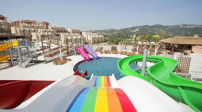 Hotelul dispune de 8 piscine pentru copii, parc acvatic cu 9 tobogane, loc de joaca pentru copii.