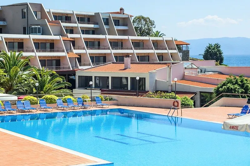 Xenios Theoxenia Hotel 4 Stars is located in one of the most beautiful places of an important cultural hub of Orthodoxy . The hotel respects the monastic architecture, was built like a sister hotel of the Metropolitan Hotel in Thessaloniki. The hotel complex Xenios Theoxenia is situated in three kilometres from Ouranoupoli, Halkidiki the peninsula of Mount Athos, near the Holy Mountain in front of the blue Aegean.