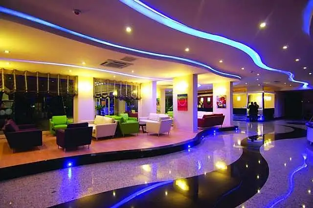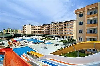 restaurantul principal, 2 restaurante A la carte, 6 baruri, 3 piscine exterioare, 3 topogane de apa, cabinet medical, coafor, sala TV, centru comercial, muzica live, parcare, sauna, baie turceasca, jacuzzi, fitness, mini fotbal, program de animatie, discoteca, mini-club, piscina pentru copii. Plaja este proprie cu nisip/pietris. Umbrelutele, sezlongurile si saltelele sunt gratuite la plaja si la piscina hotelului.