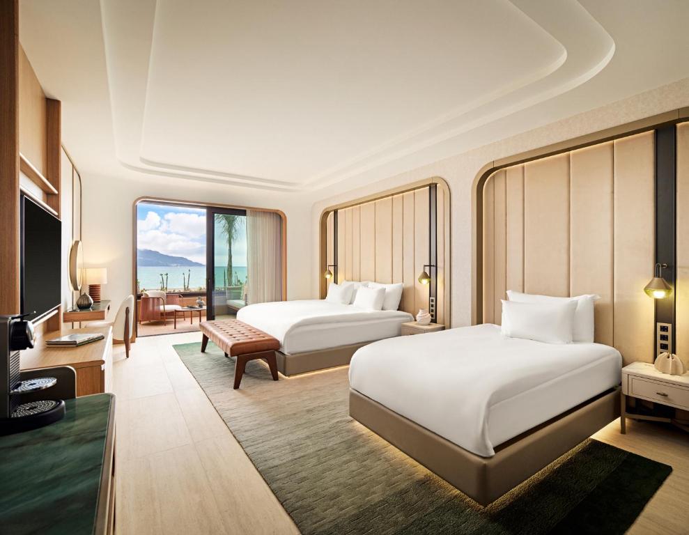 Cazare confortabilă: Camerele includ aer condiționat, balcoane cu vedere la mare și băi private. Facilitățile suplimentare includ halate de baie, minibaruri și izolare fonică. Camerele de familie și camerele interconectate se potrivesc tuturor călătorilor.
