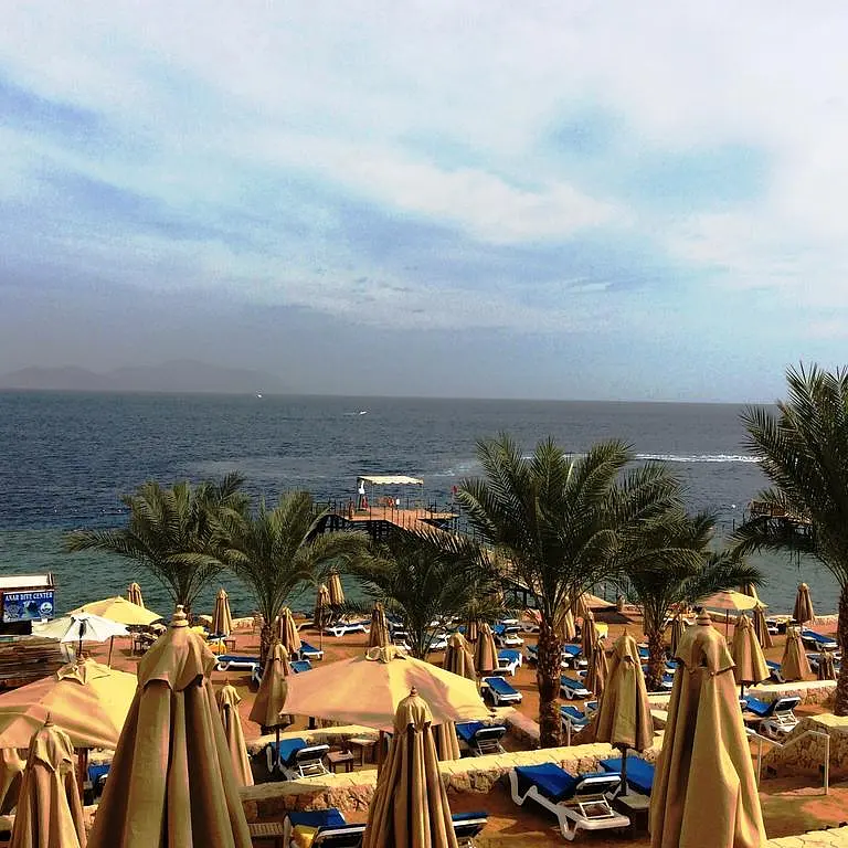 Situat pe plaja privata, pe malul marii, cu vedere directa la insula Tiran, la 3 km de aeroport, la 10 km de centrul Naama Bay, si la 17 km de Orasul Vechi in golful Sharks Bay.
