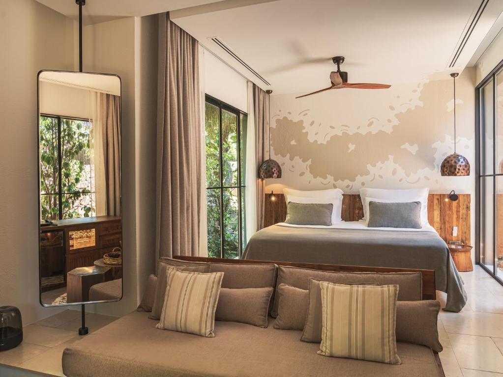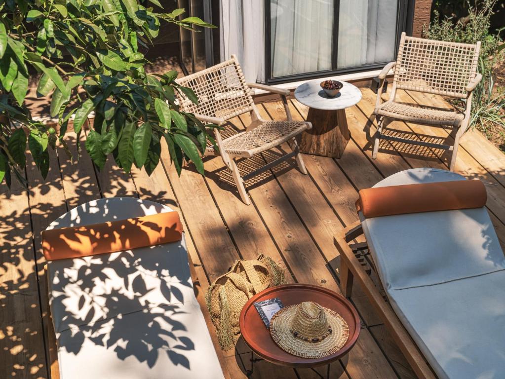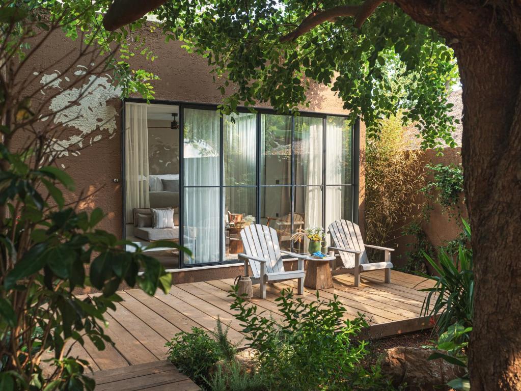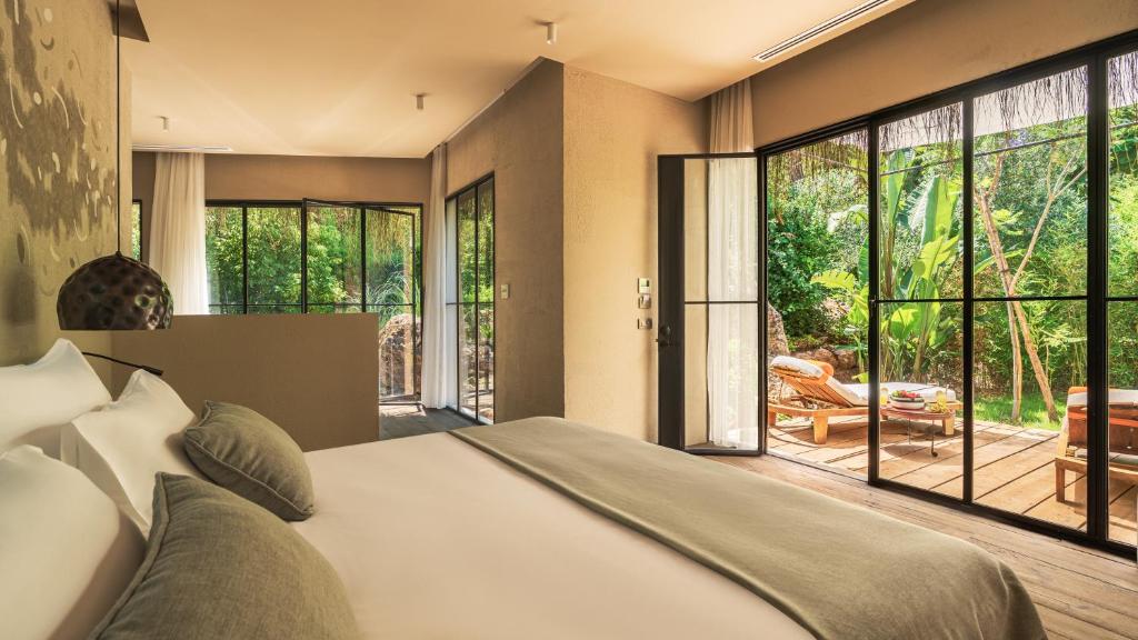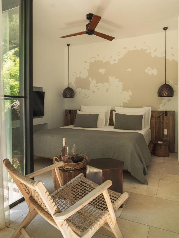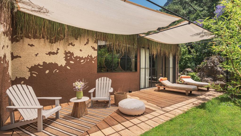 Toate camerele hotelului au aer condiționat, dulap, TV cu ecran plat, baie privată, lenjerie de pat, prosoape și terasă cu vedere la munte. Unitățile au cutie de valori.