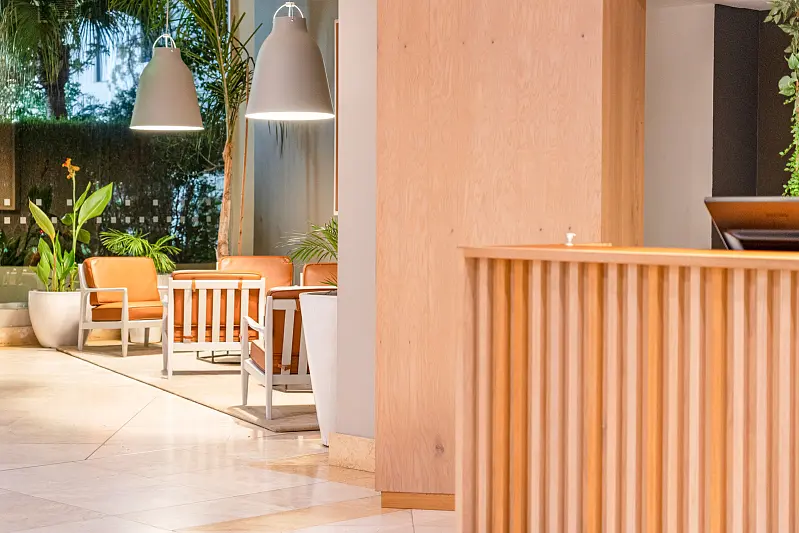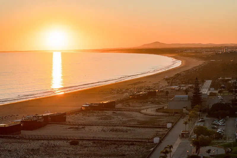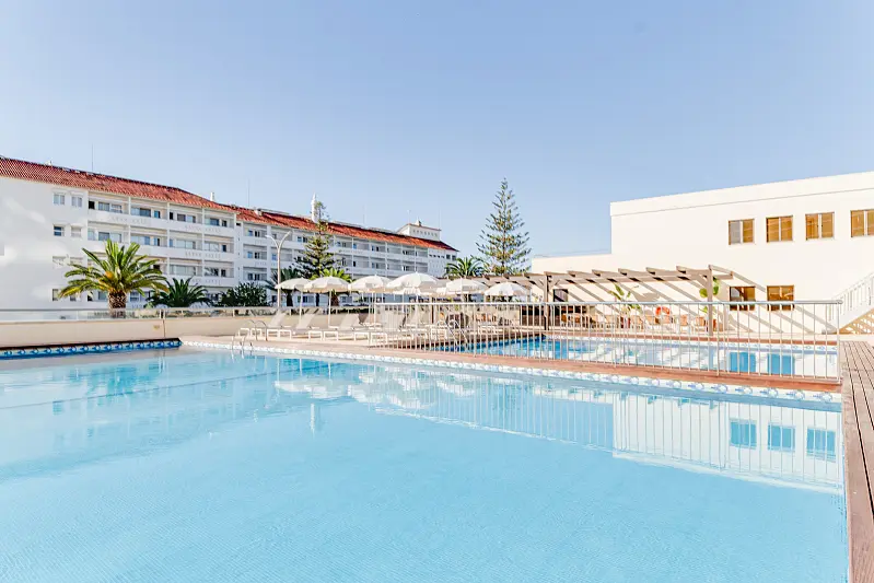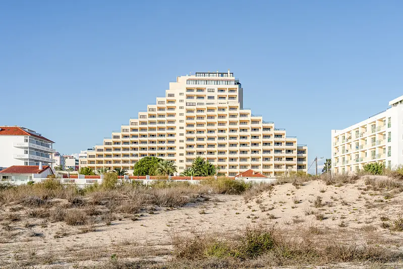 Overlooking the beautiful sandy dunes and the sea, this modern hotel is located in the popular holiday resort of Monte Gordo on the gentle Eastern Algarve. The wide sandy beach is just a minute away, the restaurants, bars, shops and the casino just a few steps. Various golf courses are within easy reach, the town of Vila Real Santo António is within a 5-minute drive. Faro International Airport can be reached within 35 minutes by car.