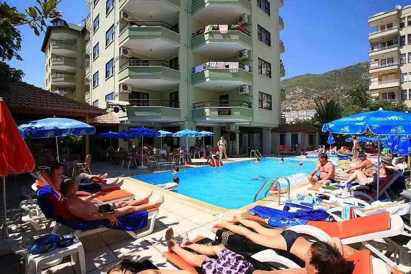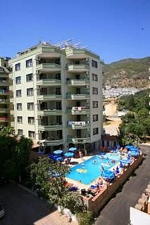 Just a stones throw from the famous sandy Kleopatra Beach, this apart hotel is a great place to spend ones holidays. A private beach area and an outdoor pool with childrens area are available. The centre of the historical city of Alanya with its restaurants, bars, cafés and shops is within walking distance, attractions such as the castle, the Red Tower or the Archaeological Museum are within easy reach.