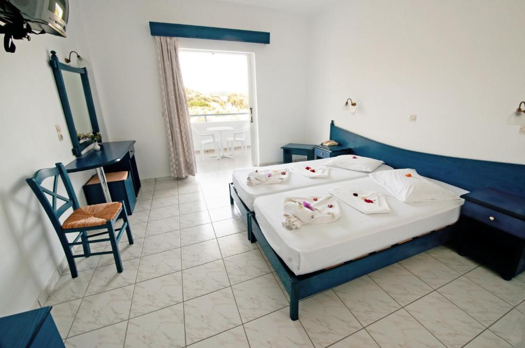 Toate camerele cu aer condiționat de la Zefiros Beach Hotel includ un frigider mic și o zonă de relaxare cu televizor. De asemenea, acestea au baie privată cu o cadă și uscător de păr.