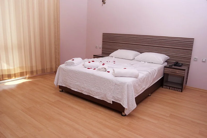Located towards the west end of Konyaalti Beach in the city of Antalya, the hotel is 230 metres from the beach and 8.5 km from the city centre. Public transport runs regularly along the beachfront road and some shops, cafes and restaurants can be found close by. Antalya Airport is 25 km away. This 45-room city hotel is contemporarily furnished. Among other recreational facilities guests are sure to appreciate the rooftop terrace restaurant with views over the Mediterranean. Free wireless Internet access is also available for those who wish to stay connected. The rooms have laminated parquet flooring. In-room amenities include individually regulated heating and balcony or terrace for enjoying the beautiful views. Guests can take a refreshing dip in the hotels outdoor swimming pool. There is also a childrens swimming area and a poolside snack bar serving refreshments.