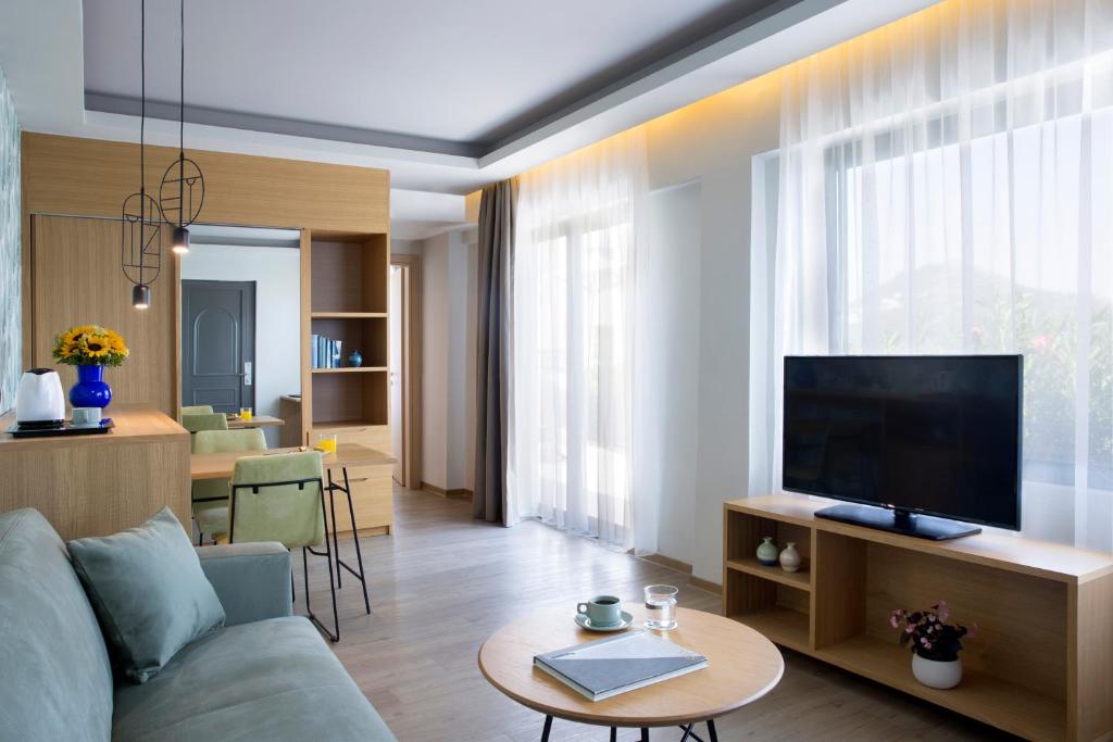 Toate bungalourile și camerele de la hotelul de 5 stele Zeus Dolce by Wyndham Athens se deschid spre un balcon. Fiecare cameră cu aer condiționat are TV cu ecran plat cu canale prin satelit și frigider, iar fiecare baie este dotată cu uscător de păr și articole de toaletă gratuite. Unele unități oferă vedere la Marea Egee.