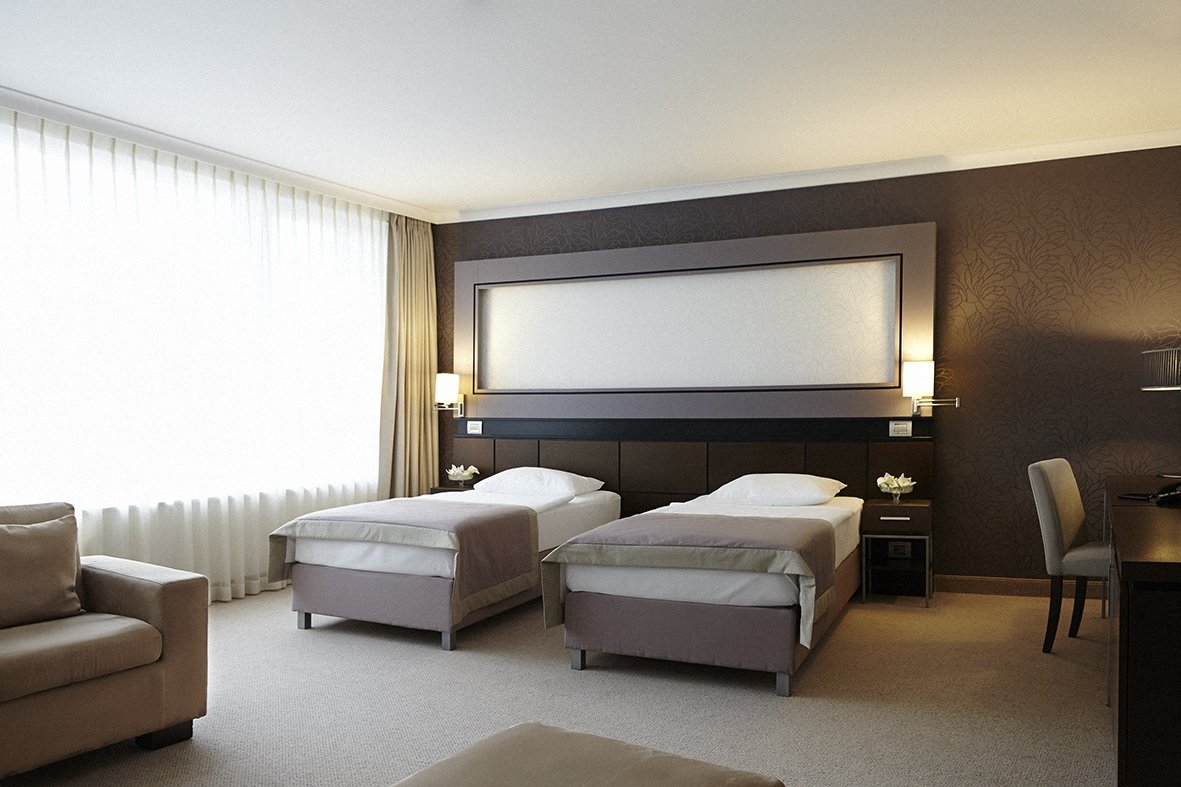 Camere DBL standard (25-29 m2): dotate cu pat matrimonial sau cu două paturi separate, baie cu duş, vedere la parc sau la munţii Budai. Grad maxim de ocupare: 2 adulţi sau 2 adulţi + 1 copil până la 13.99 ani.